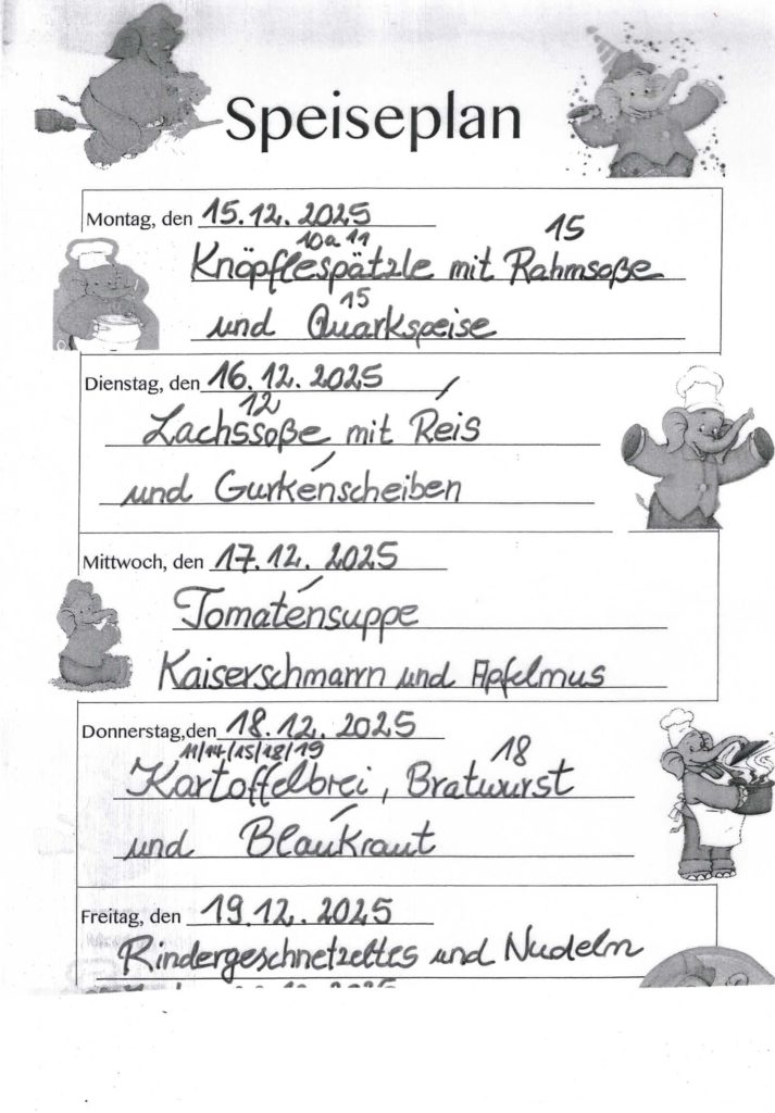 Hier finden Sie den Speiseplan für die nächste Woche: